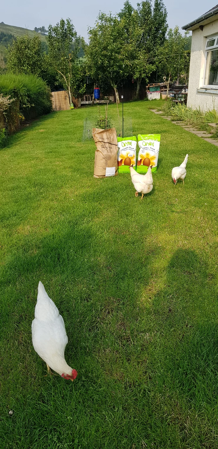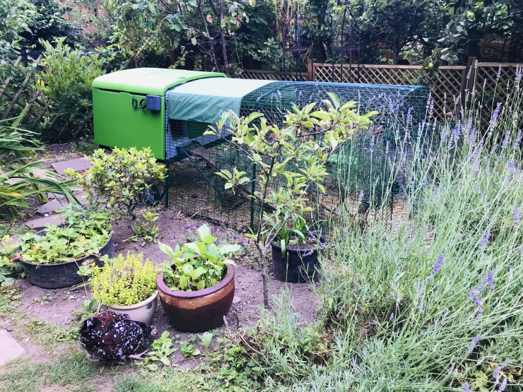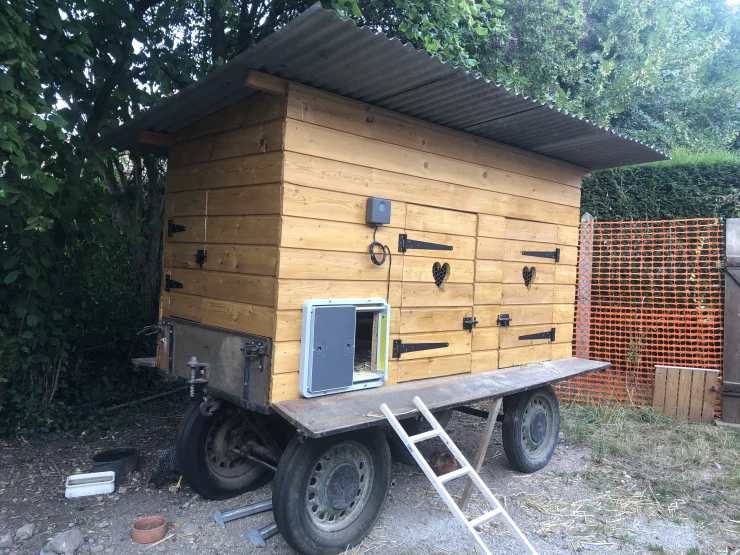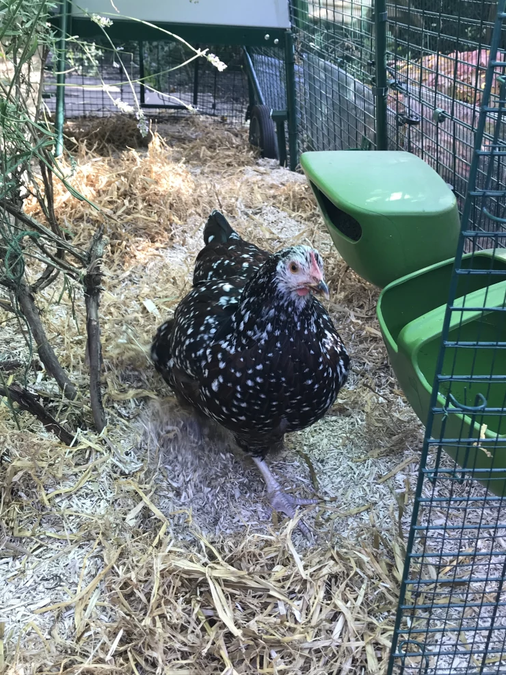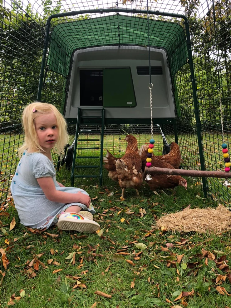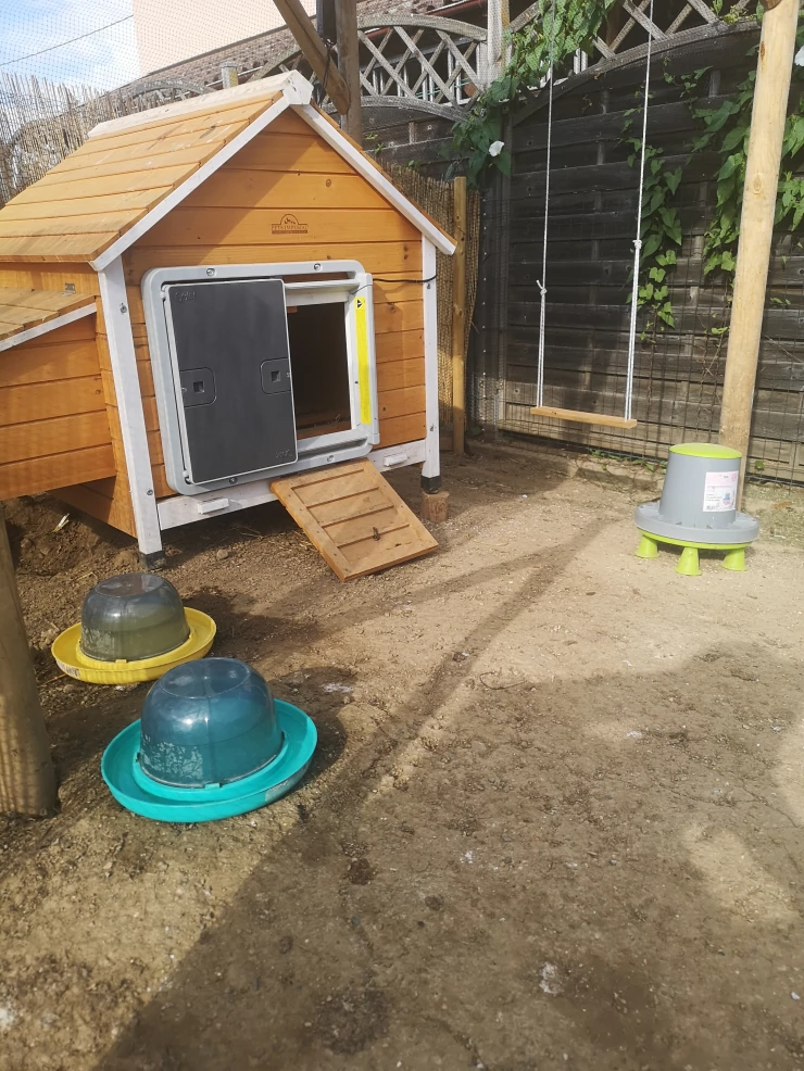 Beskrivelse: Hønsene elsker at løbe lige igennem deres have med den nye bagdør, der er installeret under deres hus