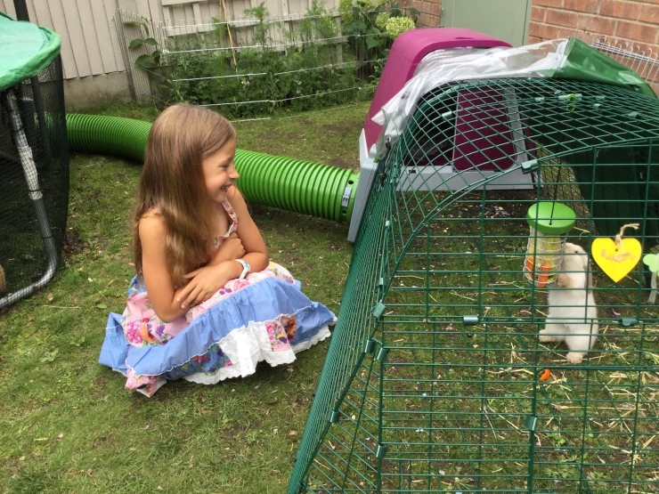 Beskrivelse: Vi har brugt legestativerne til at lave en indhegning uden for døren fra køkkenet til haven med adgang til en lukket løbegård på siden af huset. kaninerne elsker det!