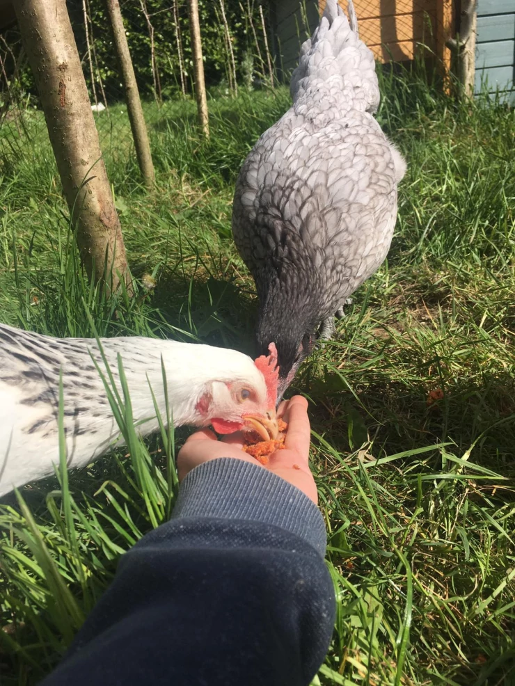 Beskrivelse: Kyllinger elsker at spise snacks i løbet af dagen!