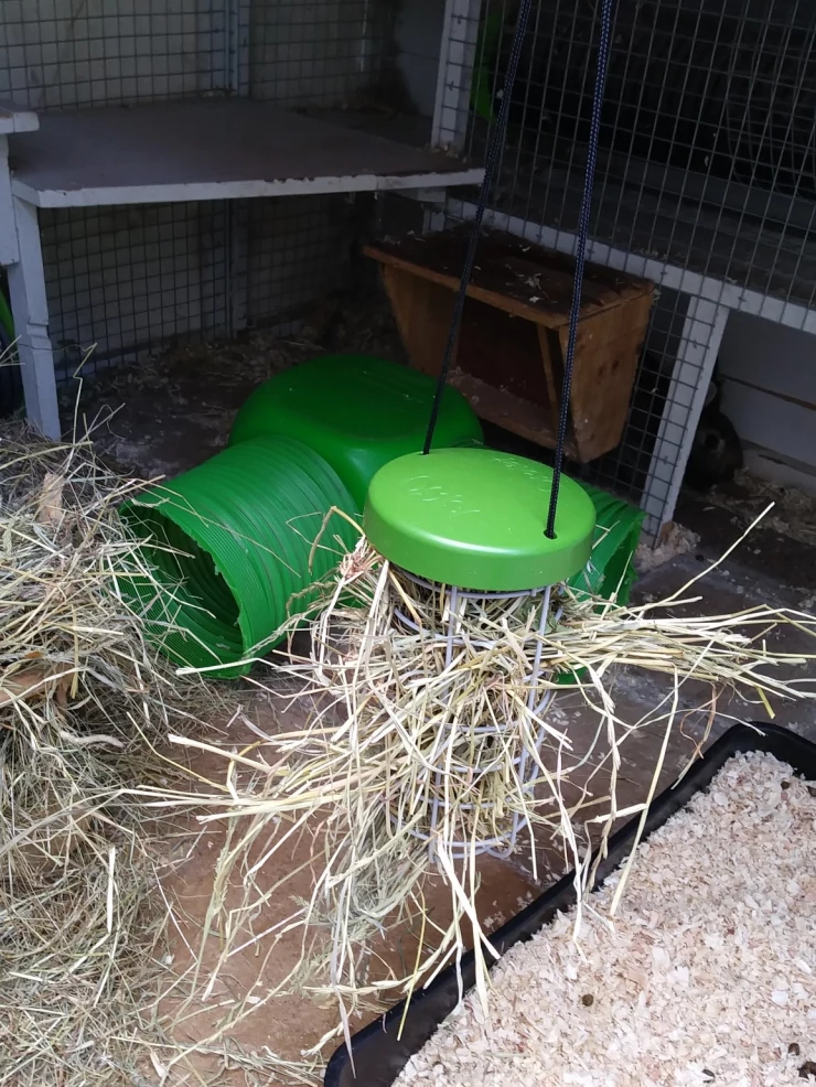 Beskrivelse: Ikke kun til høns, genial høhylde til kaniner