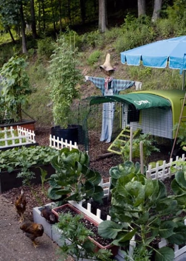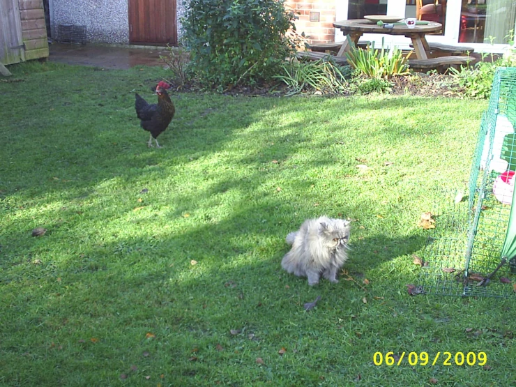 Beskrivelse: Jeg har tilføjet et fugleskræmsel til at holde øje med pigerne. se, hvor meget haven er vokset! også ungerne; tre af dem er her, de maroderer mariGolds.