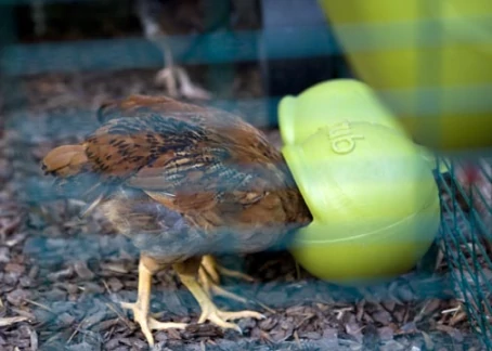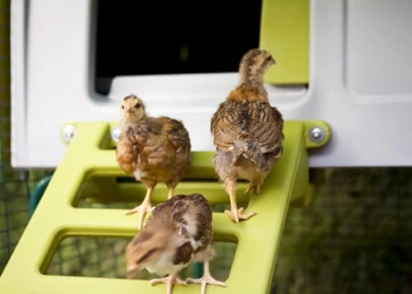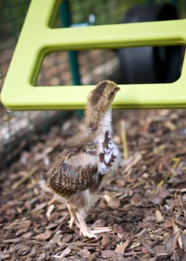 Beskrivelse: En af pippernes første dag i Eglu/run. se hvor små de er! de tjekker alting ud.