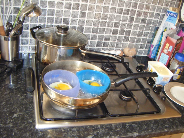 Beskrivelse: Vores første æg bliver pocheret, 4 bantieæg.