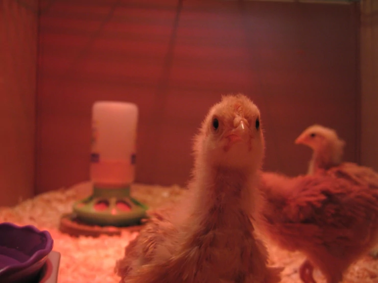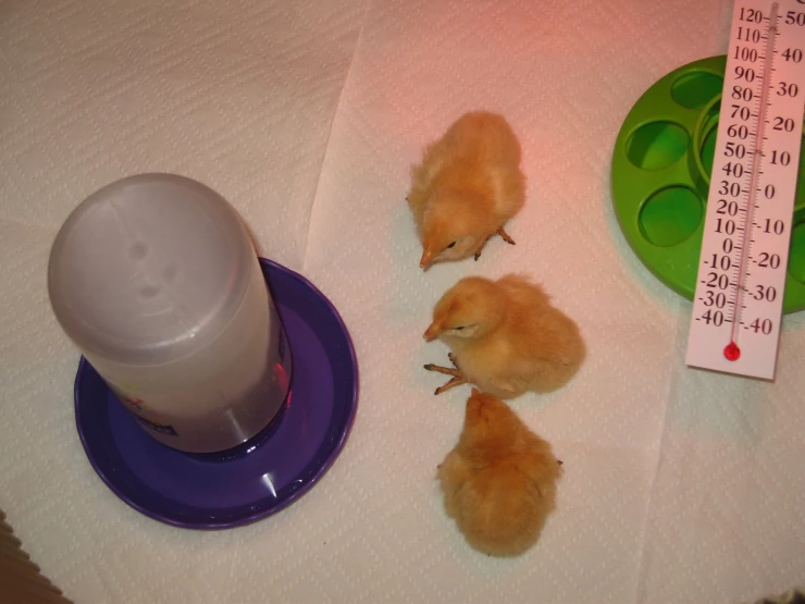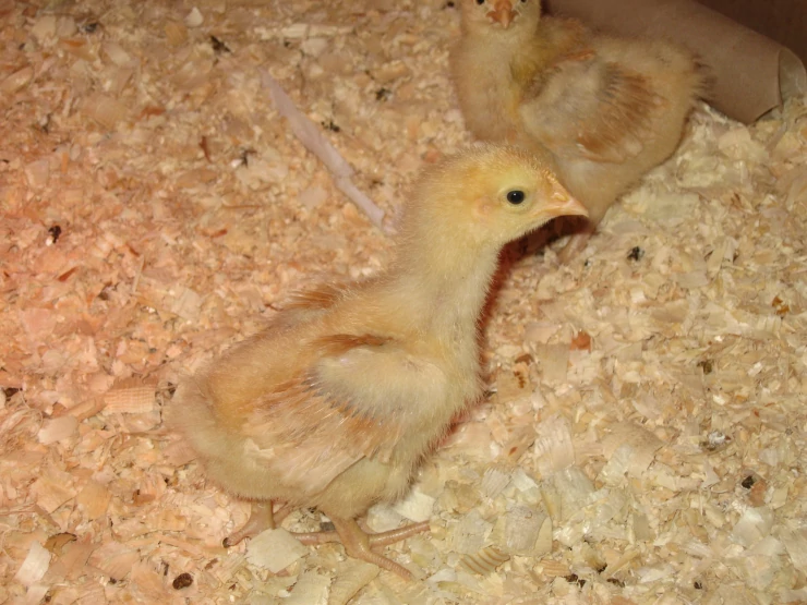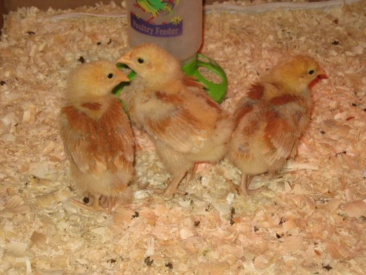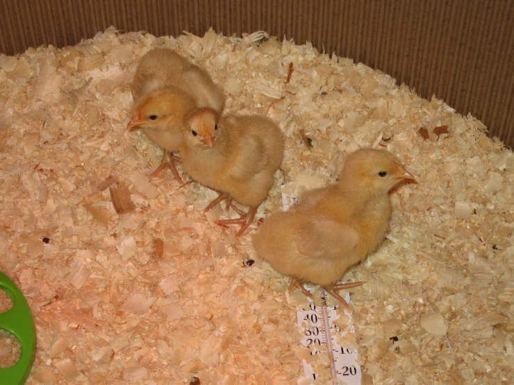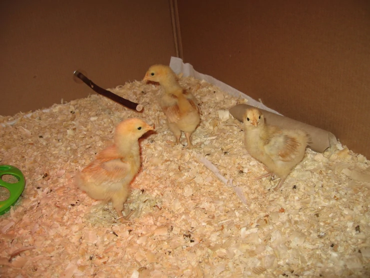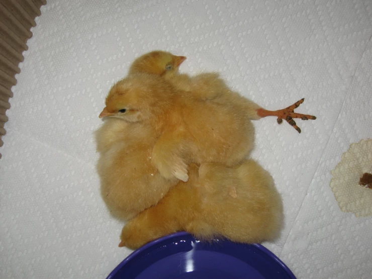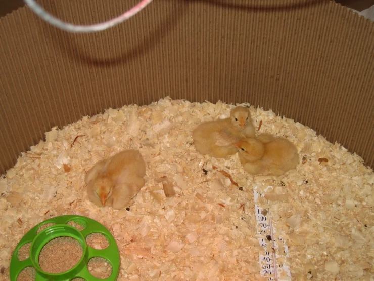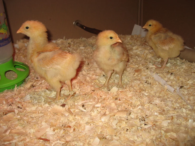 Beskrivelse: Mine længe ventede 3 buff orpington kyllinger er lige kommet i kuldet den 8. april 2009