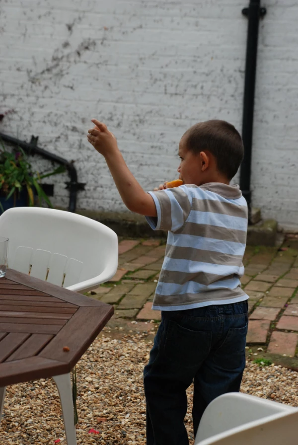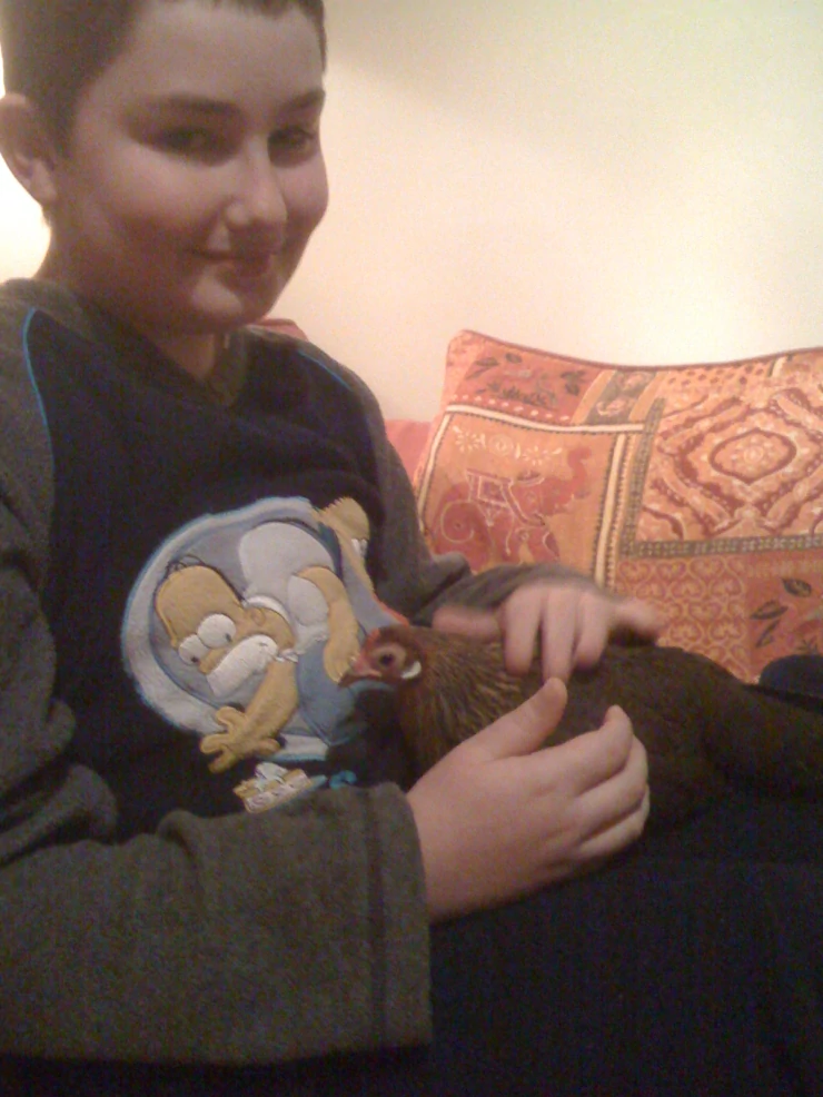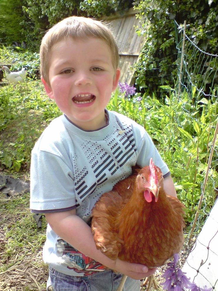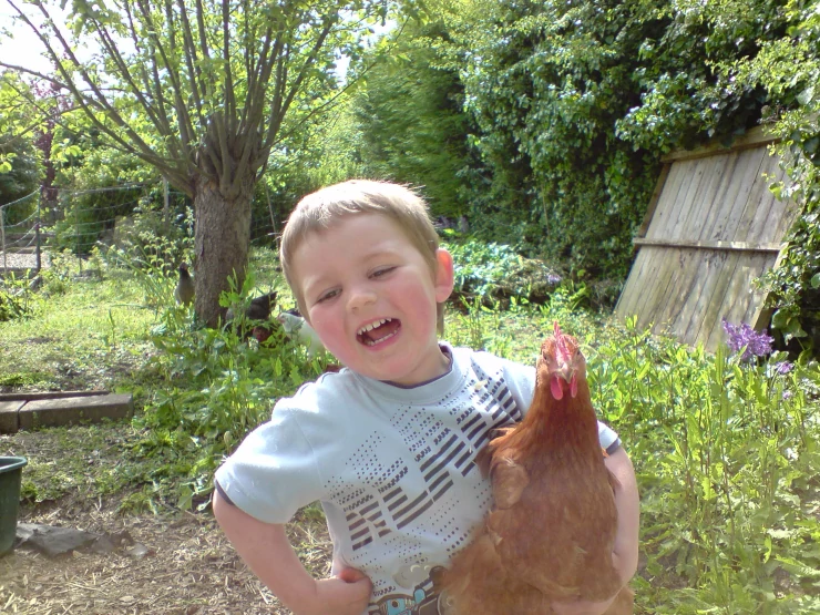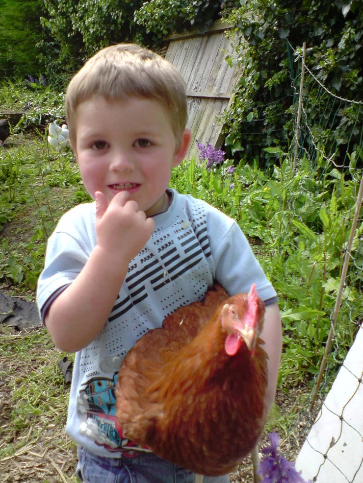 Beskrivelse: Min lillebror med en lille høne, choc