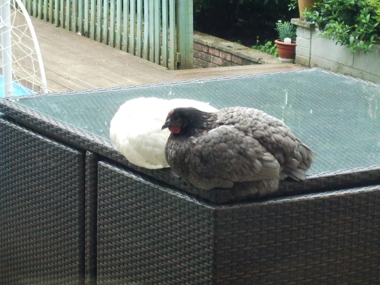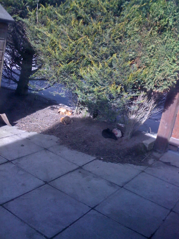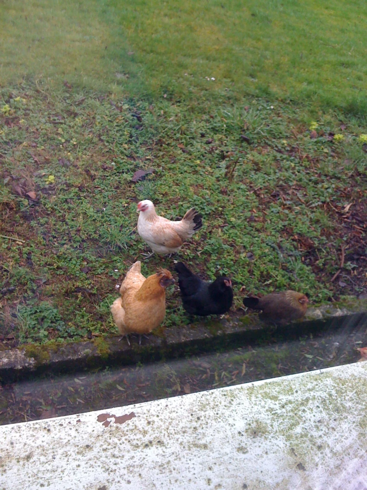 Beskrivelse: Nogle af mine høns ud af vinduet